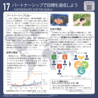 SDGsに関する理解を促進し、行動を誘発する学習ツールです。SDGsのゴールごとに、関連するキーワードや世界と日本の現状がまとめられたSDGsスタディパネル(ゴールパネル)とターゲット間の関係性がまとめられたSDGsスタディパネル(ターゲットパネル)がそれぞれ17枚ずつあります。教育現場に関わらず、SDGsを周知する際にご活用ください。